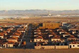 Humberstone (Chile) abre o doc, o deserto, a narrativa triste e simples. A pobreza nua e crua choca logo de primeira, é impactante. Mal conseguia permanecer sentada na poltrona daquela sala escura. Me causou inquietação. Algo me corroía por dentro como o tempo tratava de corroer as paredes daquelas casas, das vilas, do antigo maquinário. As fotografias antigas dos trabalhadores e de suas famílias retratavam a precaridade da vida naquele lugar tão sem vida. Me recordaram os relatos da infância de meu pai, o passar necessidade, as longas jornadas de trabalho, crianças com uma curta infância.